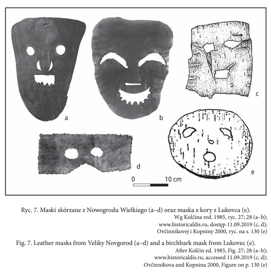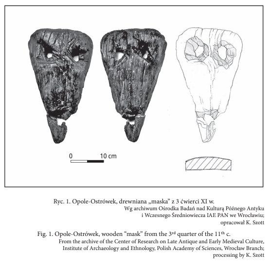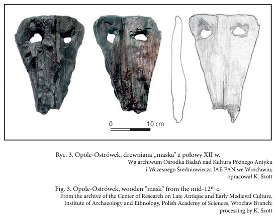Ryciny masek pochodzą z pracy Kamila Kajkowskiego "Maski z Opola w kontekście obrzędowości średniowiecznych Słowian"