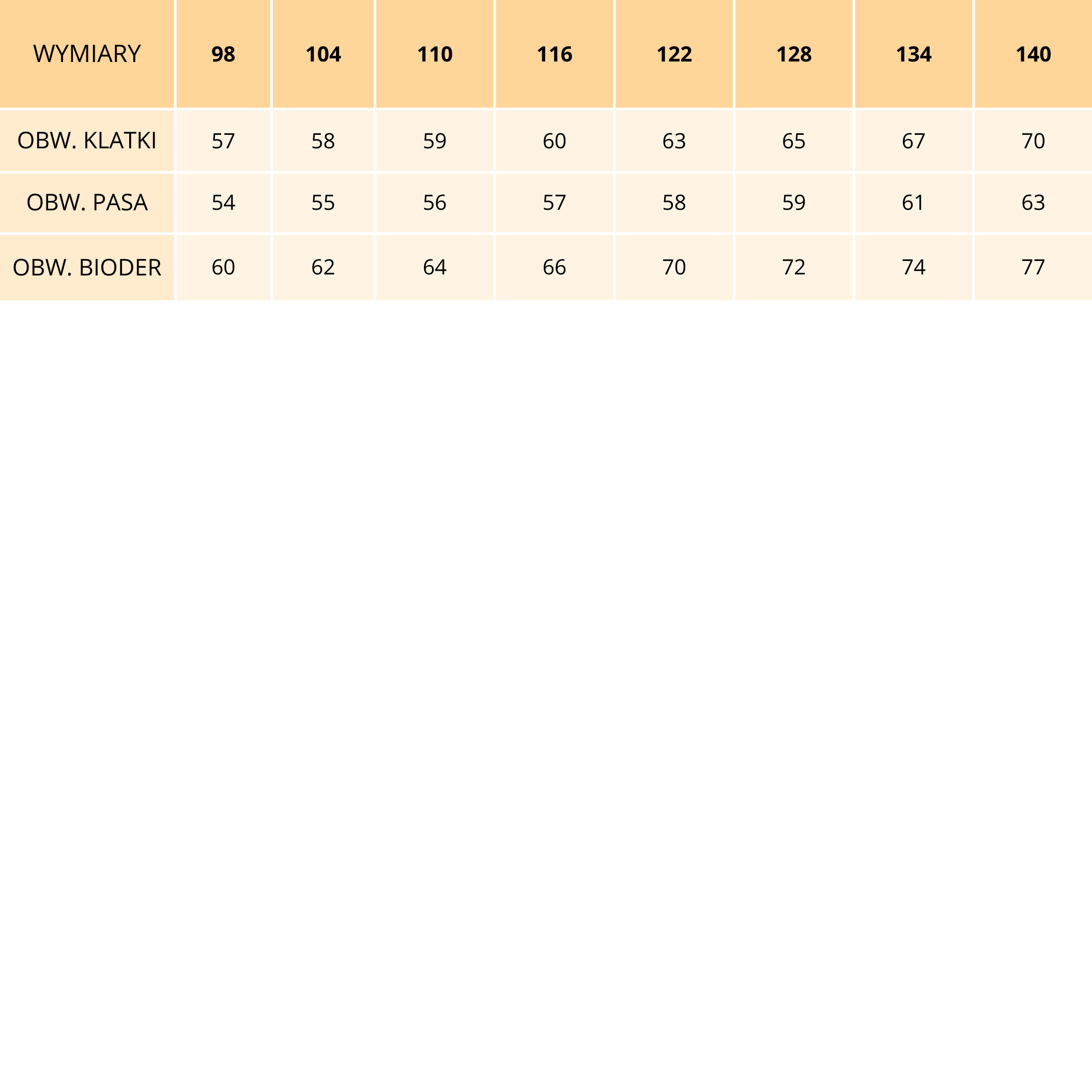 Tabela rozmiarów: